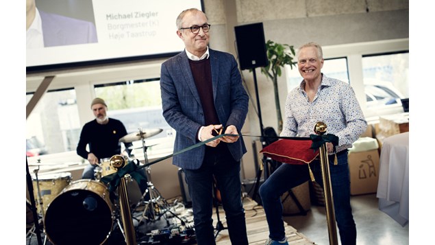 Borgmester i Høje Taastrup Kommune, Michael Ziegler, fortæller i sin tale, at det er vigtigt, at en virksomhed som Tscherning viser vejen i forhold til at genbruge byggematerialer.